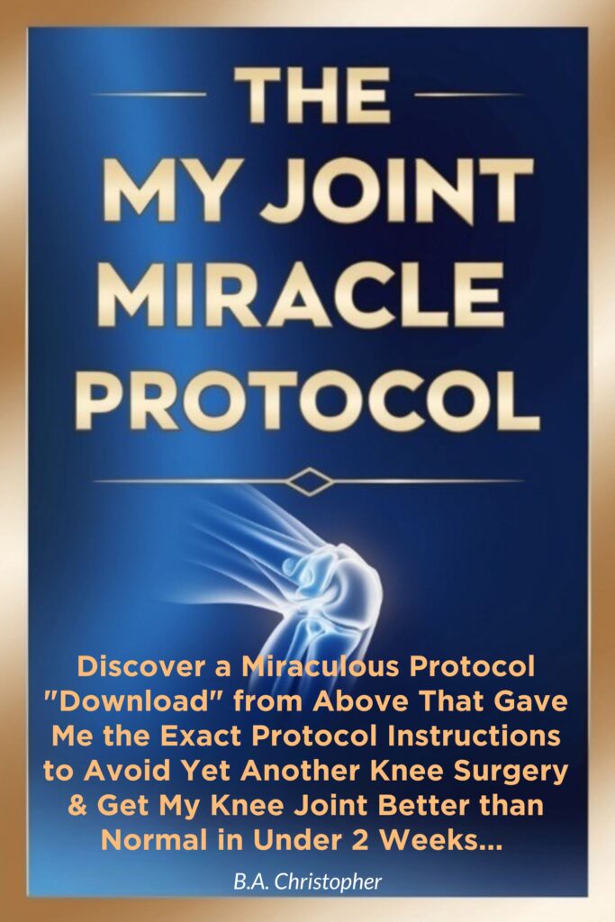 Introducing “The My Joint Miracle Protocol” by B.A. Christopher! 🌟 This groundbreaking Kindle book reveals a miraculous protocol that was downloaded from above, guiding the author to avoid yet another knee surgery and reclaim his life in under two weeks.